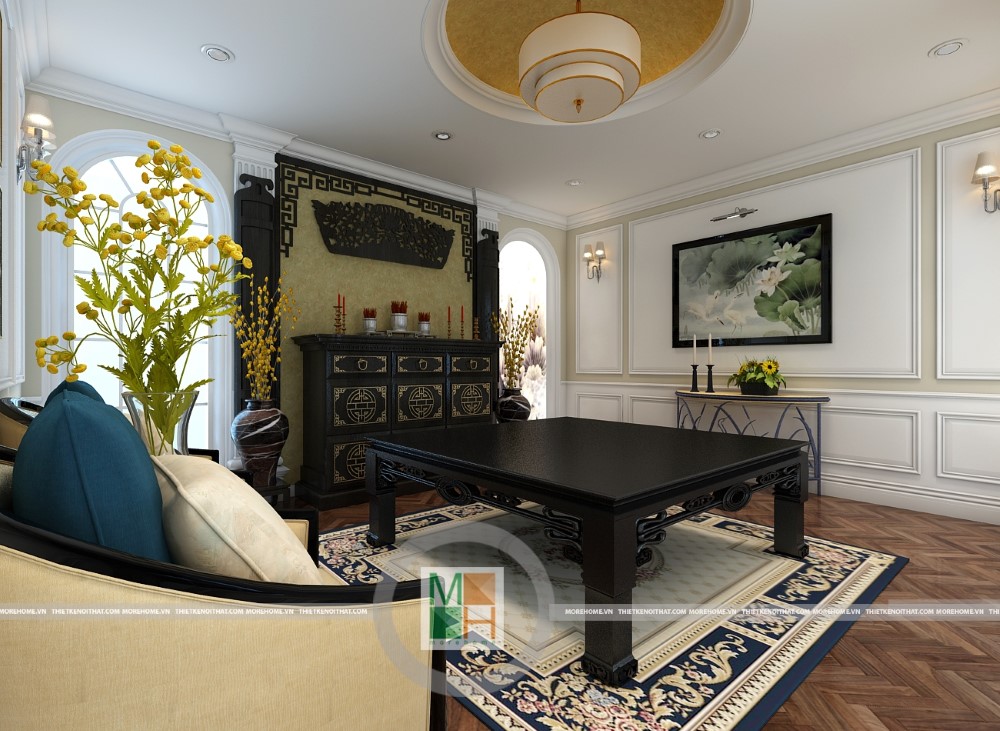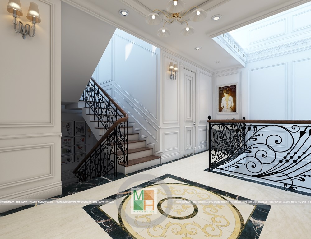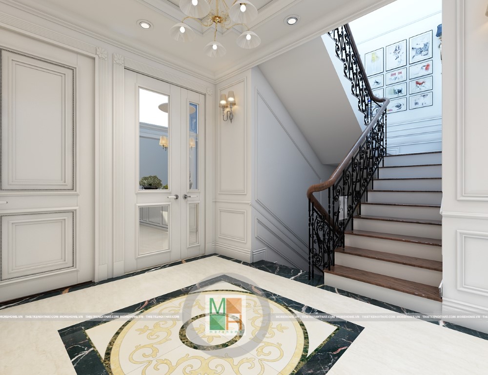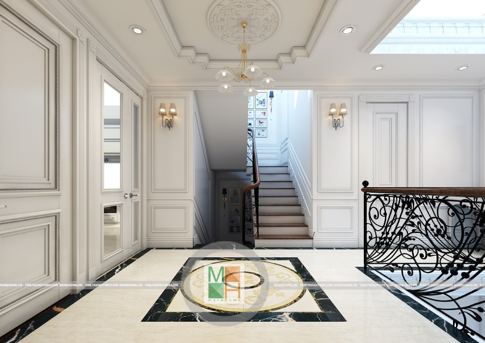 Thiết kế nội thất luôn đặc biệt chú ý đến sự kết hợp hài hòa giữa ánh sáng, màu sắc và đồ nội thất trang trí. Để làm được điều đó, một kiến trúc sư thiết kế nội thất phải rất linh hoạt và sáng tạo trong từng chi tiết dù là nhỏ nhất. Với thiết kế nội thất nhà phố nổi bật theo phong cách thiết kế tân cổ điển, căn nhà liền kề của gia đình chị Nhung là một trong những ví dụ điển hình mang ấn tượng đặc biệt. Với tông màu chủ đạo là màu trắng, kết hợp với ánh sáng và các chi tiết đã định hình rõ ràng mong muốn thiết kế nội thất ngay từ đầu của gia chủ.