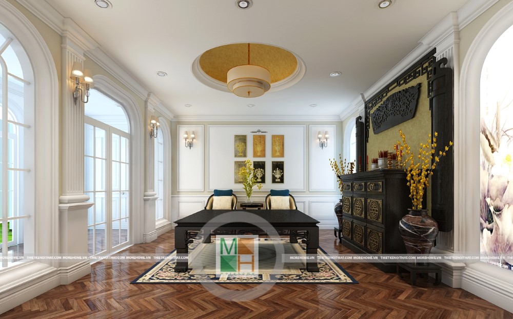 Những không gian khác trong căn nhà với thiết kế nội thất tân cổ điển như phòng thờ, hành lang, phòng đọc hay cả khu tủ quần áo cũng gây ấn tượng mạnh với gia chủ. Theo đuổi phong cách thiết kế nội thất tân cổ điển, các kiến trúc sư đã khéo léo lồng ghép nhiều chi tiết nhỏ, đan xen một cách có chủ ý định hình phong cách cho cả gia chủ và ngôi nhà. Các yếu tố đó kết hợp hài hòa với màu sắc chủ đạo, ánh sáng và các thiết kế xanh khác đã tạo nên một không gian sống sang trọng và quý phái cho gia chủ.