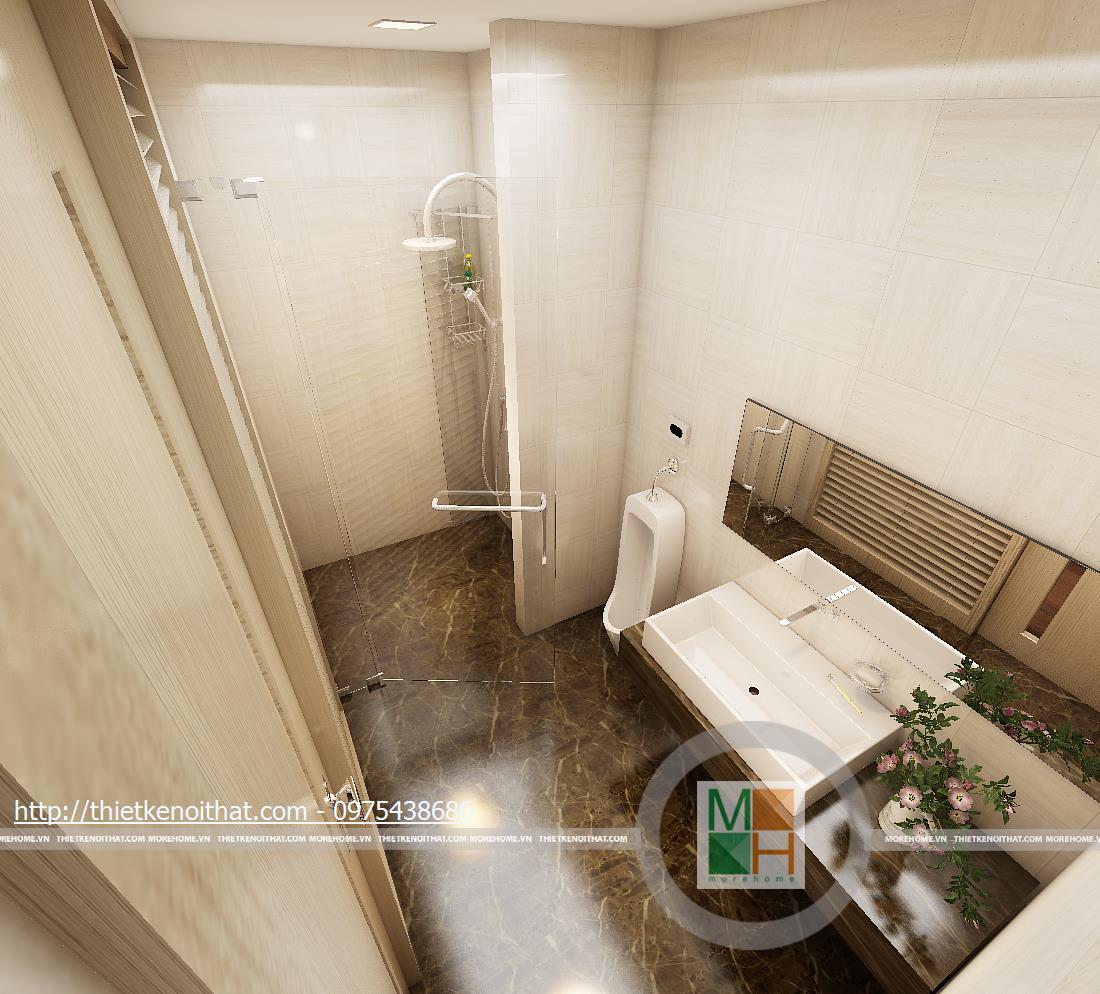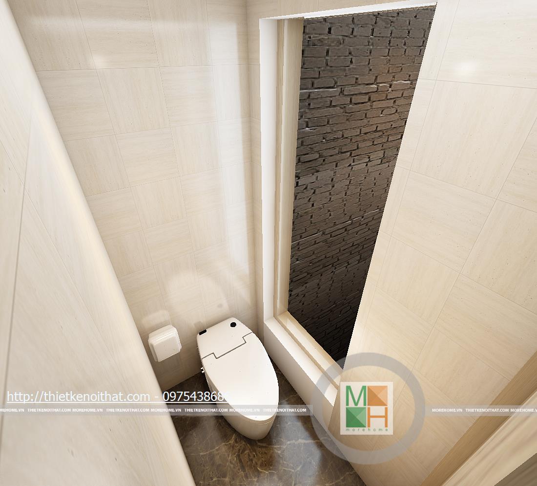 Phòng tắm ở các tầng sử dụng những loại đá lát sáng màu để tạo cảm giác sạch sẽ và sáng sủa. Bồn tắm đứng được trang bị để không chiếm nhiều diên tích và vẫn rất tinh tế.