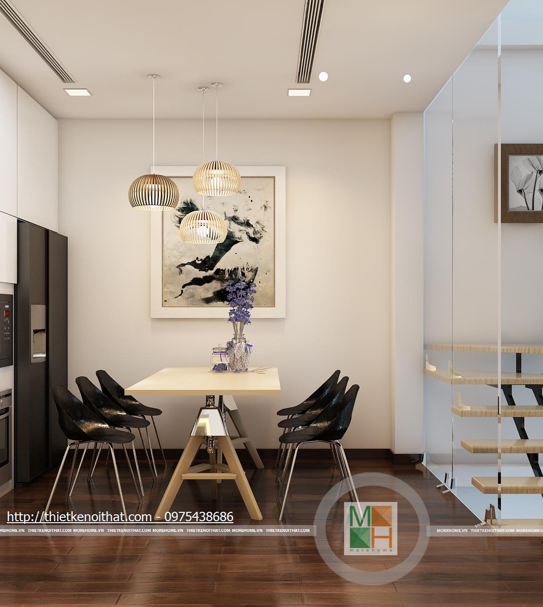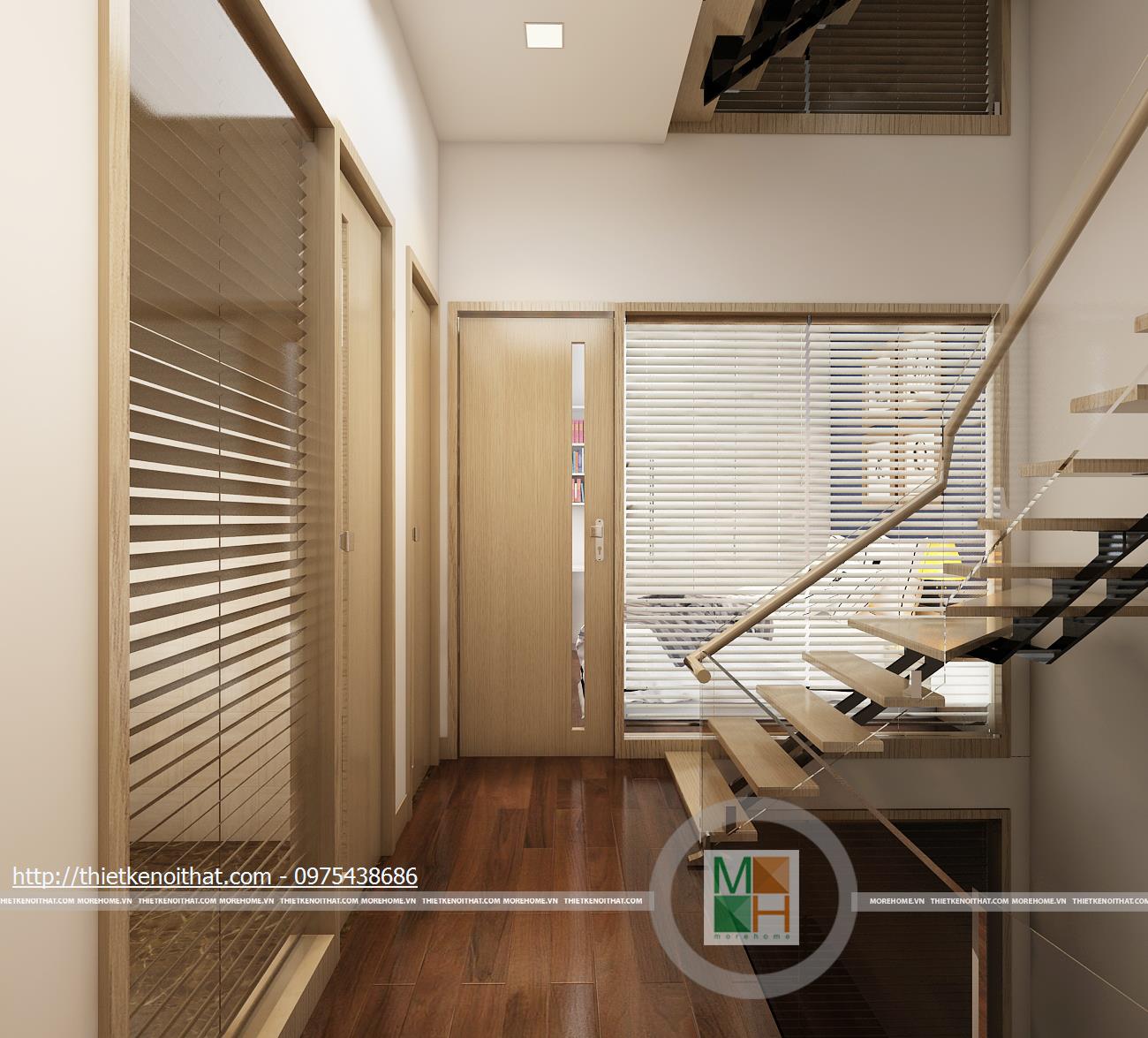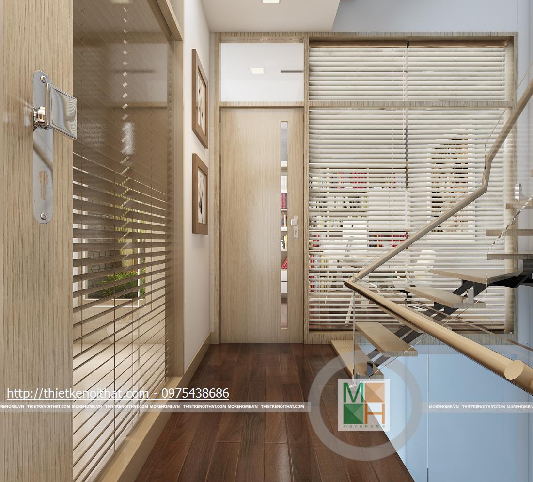 Hành lang cầu thang có thể trang trí thêm bằng tranh ảnh gia đình để gia chủ có thể giới thiệu với bạn bè và khách đến chơi nhà. Dây chính là điểm nhấn đặc biệt trong mẫu thiết kế nội thất nhà liền kề này.