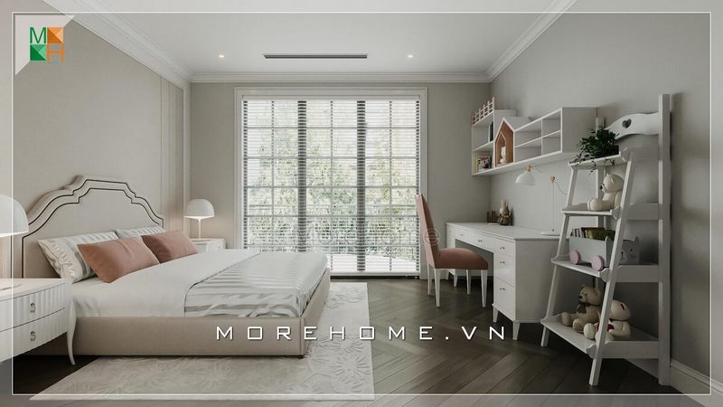 Thiết kế phòng ngủ đẹp ấn tượng với nội thất cao cấp sử dụng sắc trắng trẻ trung dành riêng cho biệt thự