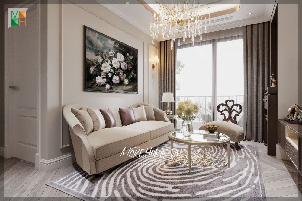 Nội thất phòng khách của nhà chung cư được thiết kế theo phong cách hiện đại, trẻ trung và lịch sự.